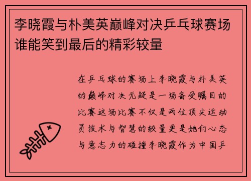 最终,希望无论哪支球队获胜,都能传递出团结拼搏、不屈不挠的体育精神,让我们共同期待这场经典之战带来的精彩瞬间及感动!